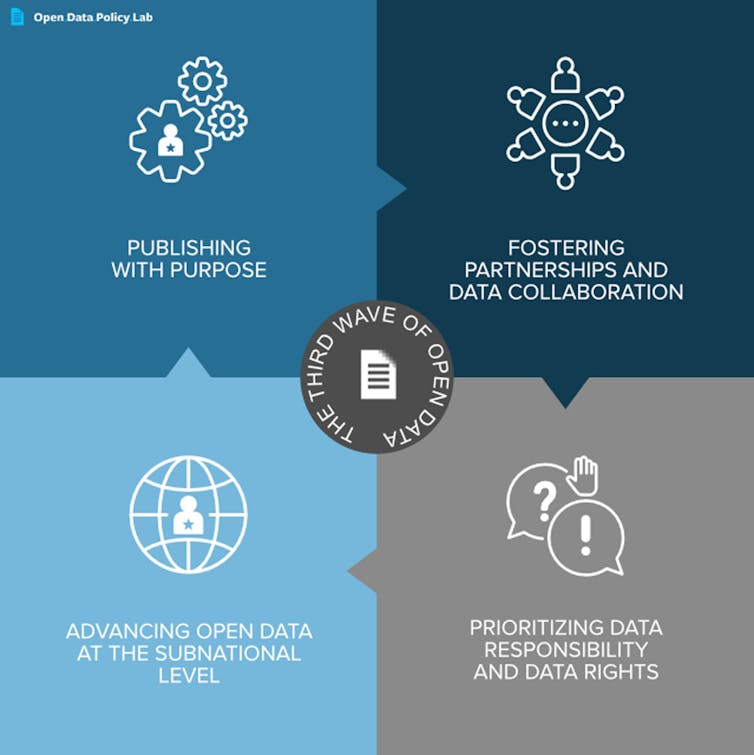 Les partisans du partage des données scientifiques peuvent tirer des enseignements du mouvement en faveur de l’accès aux données publiques. Comme on le voit depuis 30 ans, l’ouverture des données doit reposer sur une démarche cohérente aux yeux des chercheurs, des fournisseurs de données et des intermédiaires, de façon à mettre en place un écosystème propice à la collaboration. Il faut que les entités concernées se mobilisent concrètement en faveur de ladite ouverture.