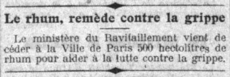 Seule la consommation de rhum, reconnue comme remède efficace contre la grippe « espagnole », ne figure pas dans la liste des recommandations officielles contre le coronavirus.