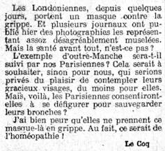 « Mais, voilà, les Parisiennes consentiront-elles à se défigurer pour sauvegarder leurs bronches ? J’ai bien peur qu’elles ne prennent ce masque-là en grippe », ironise-t-on dans Le Gaulois.