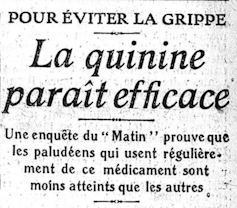 Les débats sur la nécessité de désinfecter les lieux publics ou encore sur les vertus de certains traitements semblent également avoir traversé les époques. En 1918, par exemple, une enquête sur l’efficacité de la quinine, initialement utilisée pour traiter le paludisme, rappelle les polémiques actuelles autour de la chloroquine, qui en est le substitut synthétique.