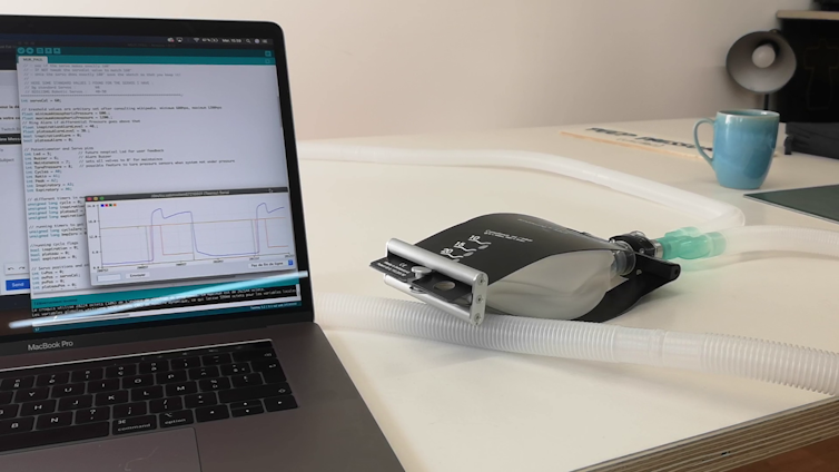 Le projet de recherche E-vent (emergency ventilator) du MIT utilise un ballon de premier secours normalement actionné à la main, et lui ajoute un moteur pour la compression et des capteurs pour détecter les paramètres de la ventilation. Un autre projet convertit des respirateurs utilisés pour l’apnée du sommeil en respirateurs d’appoint. En France, un collectif de designer travaille à la conception et au prototypage d’un respirateur à coût minimal – le MUR qui se branche sur une arrivée d’air et permet de contrôler les différents paramètres de ventilation.